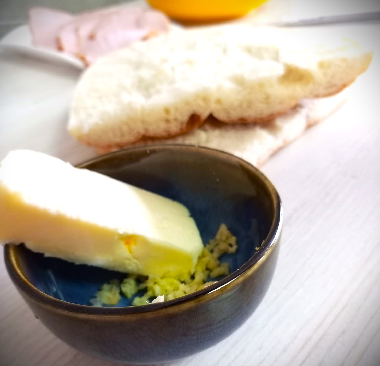 Выдавливаем чеснок и смешиваем со сливочным маслом